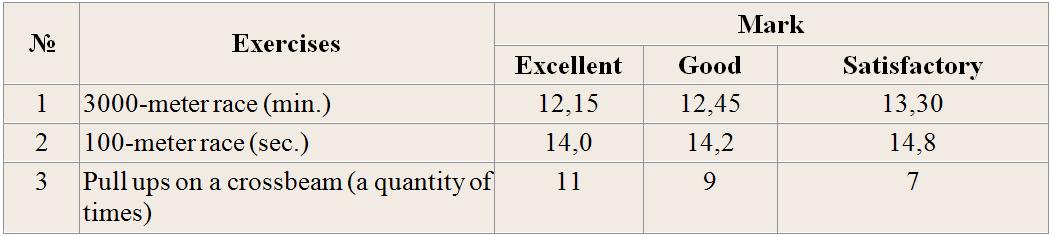 Standards of Physical Preparation for the Applicants to the Military Institute of Internal Troops of the Ministry of Internal Affairs of the Republic of Kazakhstan